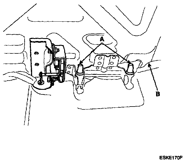 4. Disconnect the headrest guide (A), after raising the rear seat back frame (B).