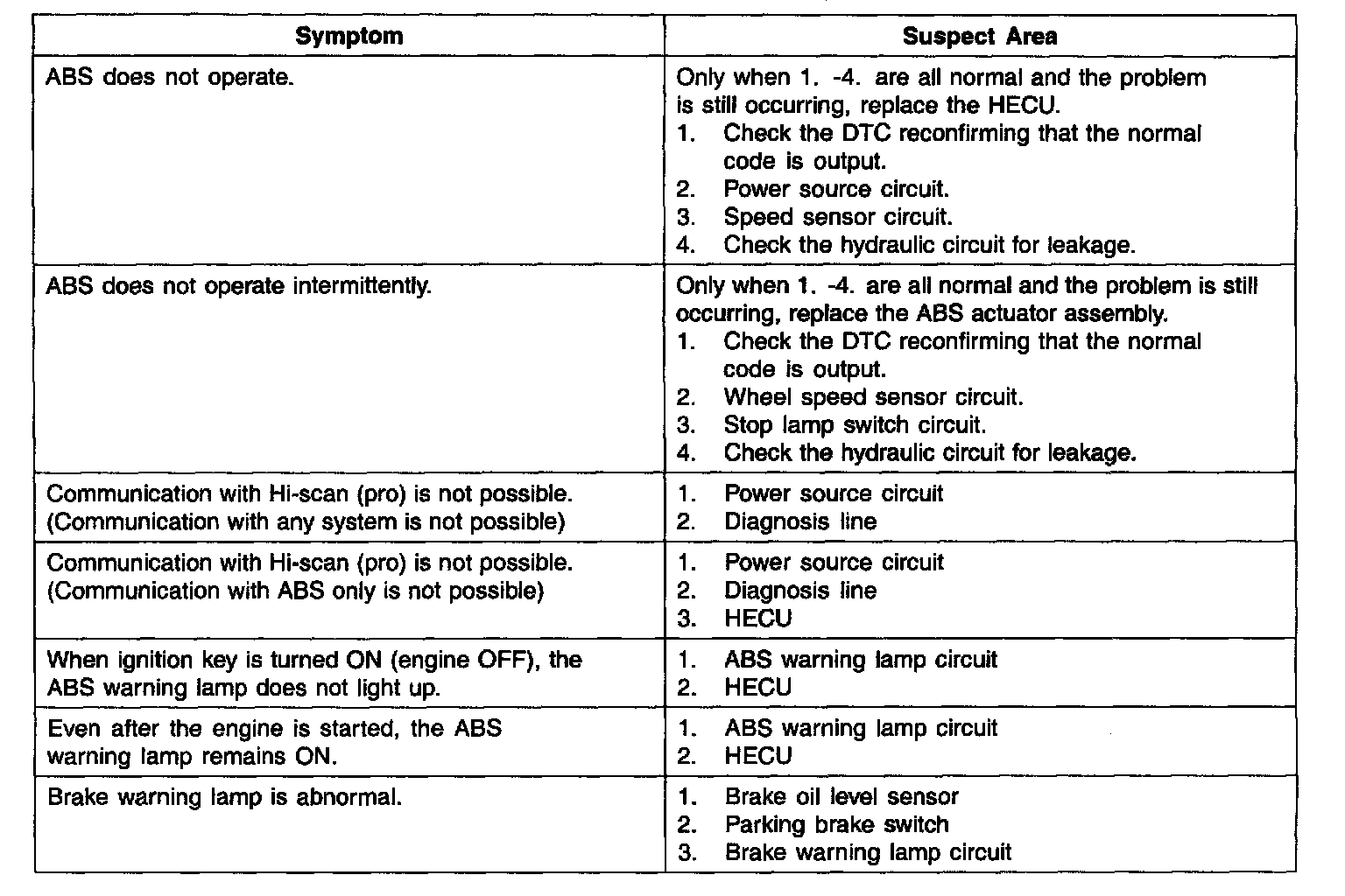 PROBLEM SYMPTOMS TABLEIf a normal code is displayed during the DTC check but the problem still occurs, check the circuits for each problem symptom in the order given in the table and proceed to relevant troubleshooting.