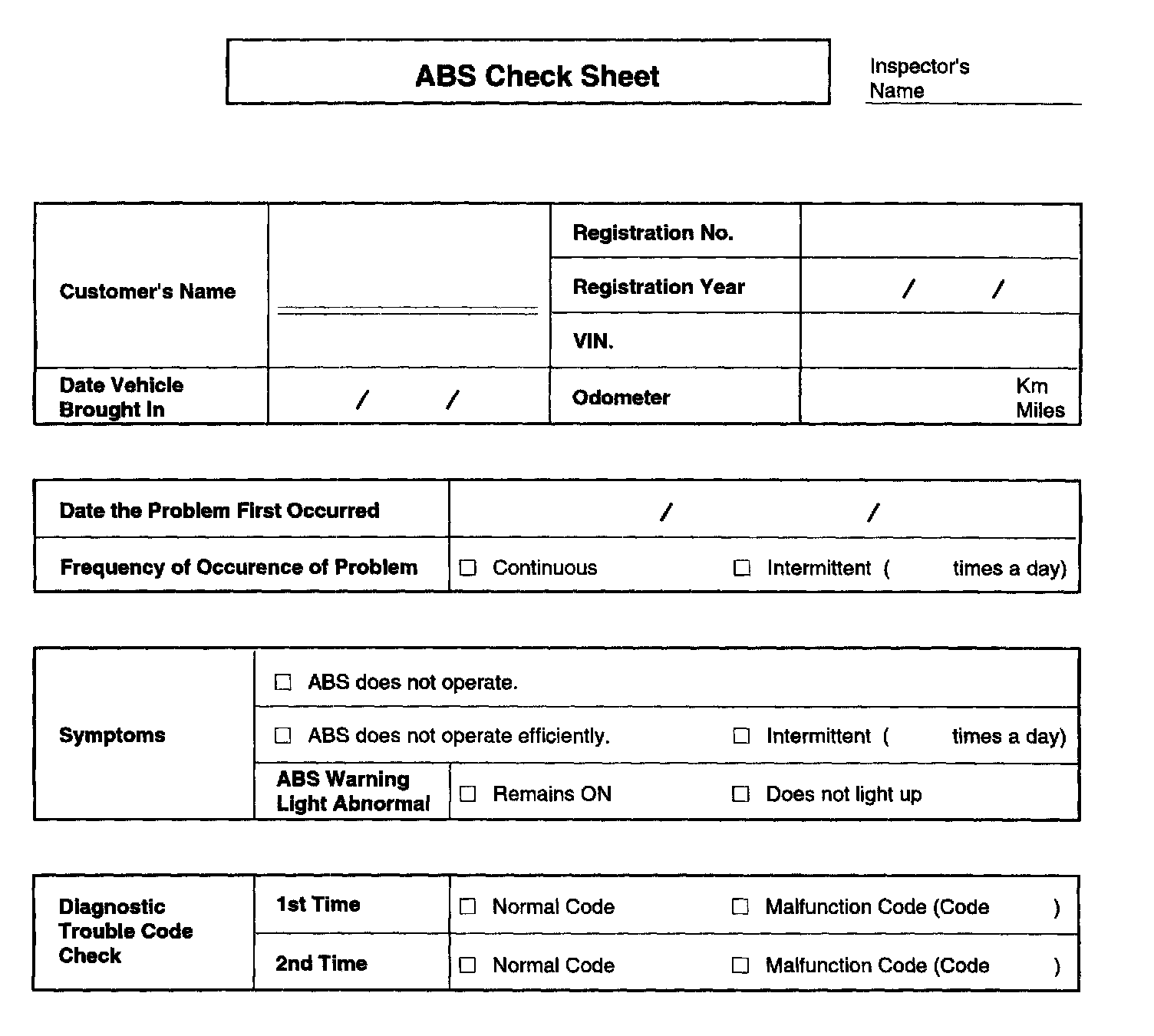 ABS Check Sheet