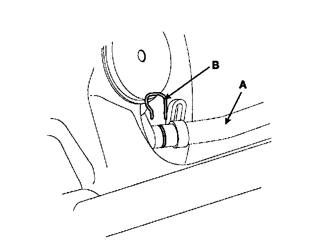 2. Remove the parking brake cable retaining (B), from the parking brake cable (A).