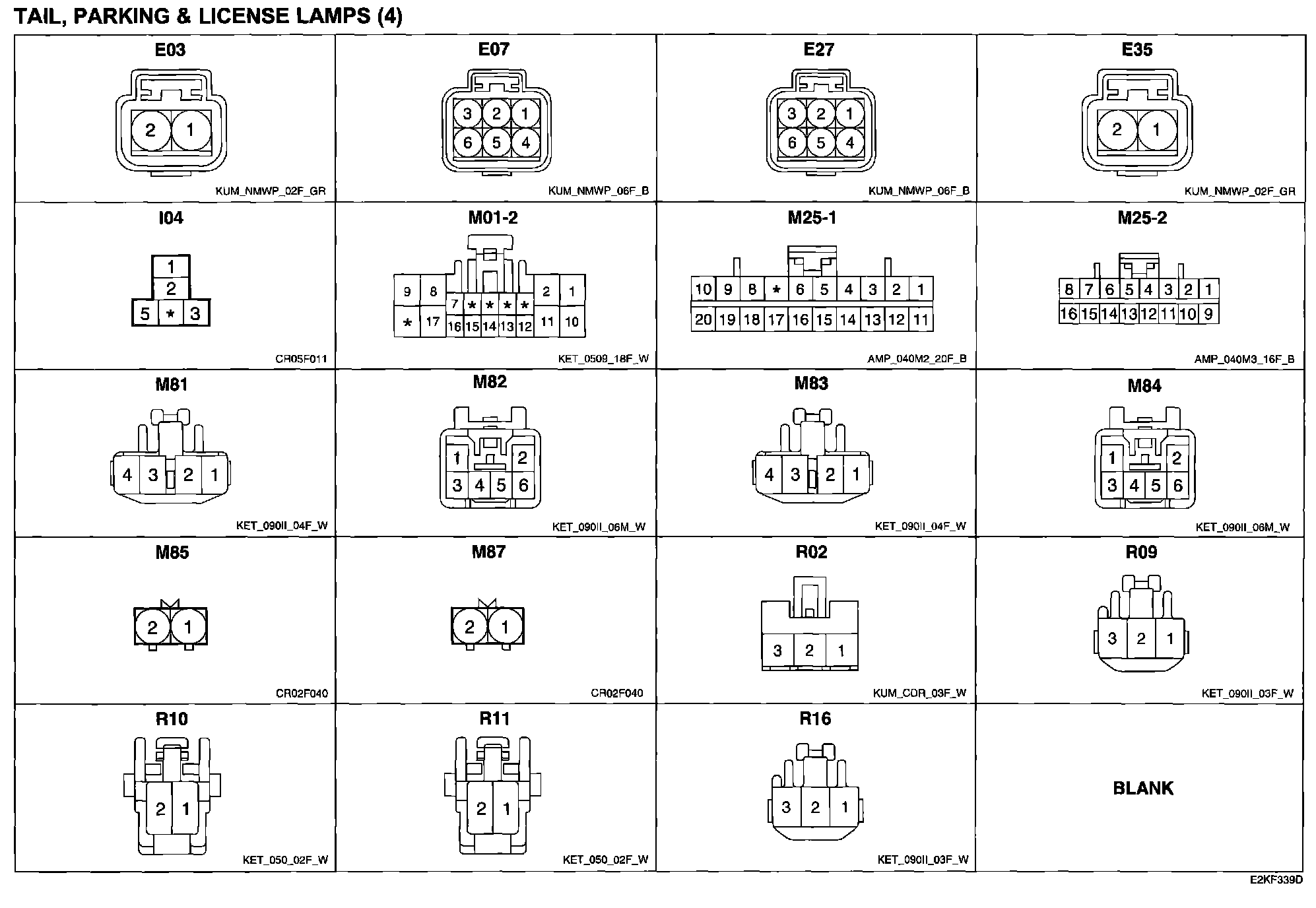 Tail, Parking & License Lamps (4) Connector Pin Outs: