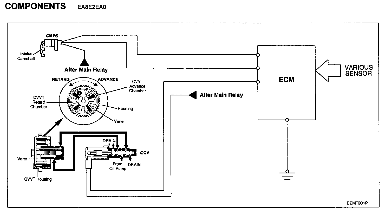 - If a malfunction occurs, the CVVT system control is disabled and the valve timing is fixed at the fully retarded position.