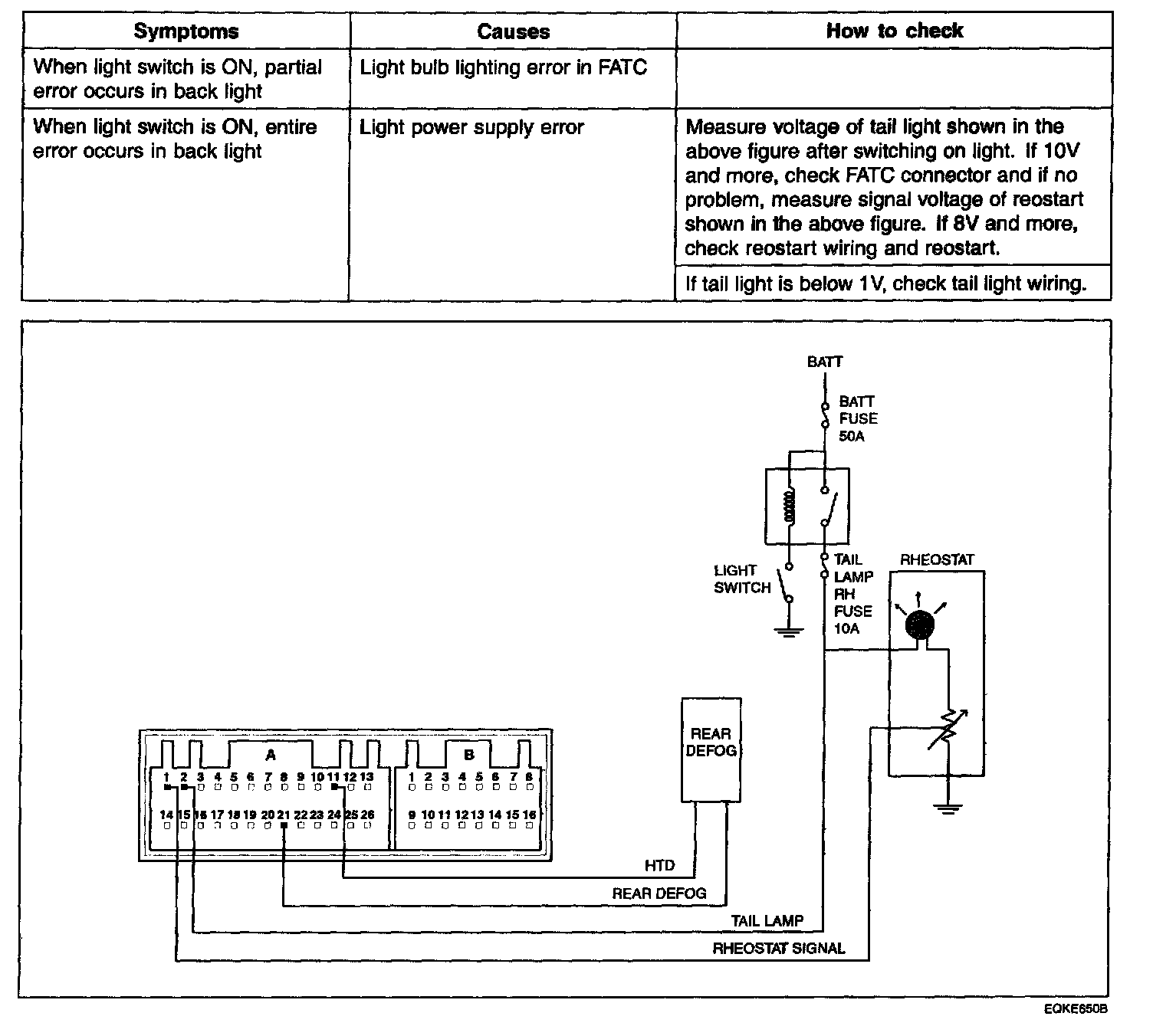 BACK LIGHT AND REAR GLASS HEAT RAYS CHECKError Diagnostics: