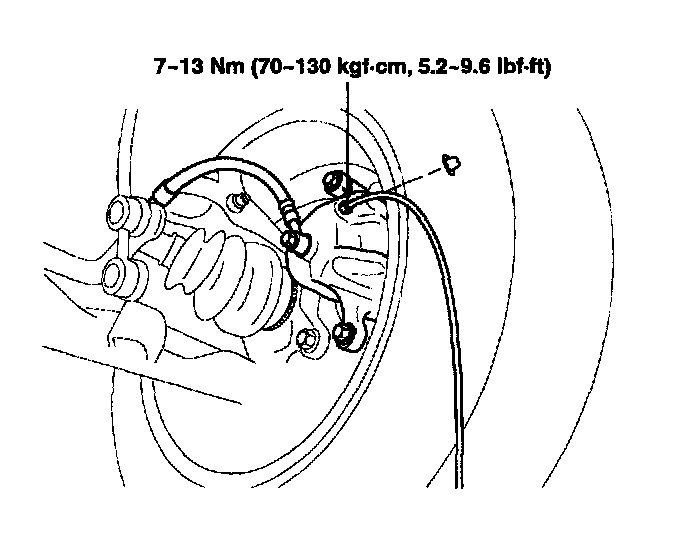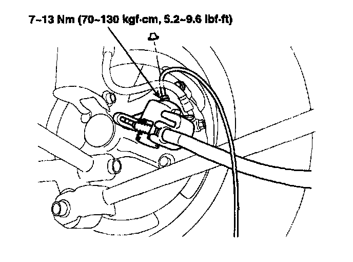 3. Loosen the right-rear brake bleed screw to allow air to escape from the system. Then tighten the bleed screw securely.