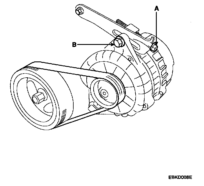 2. Move the alternator to obtain the proper belt tension, then retighten the nuts.