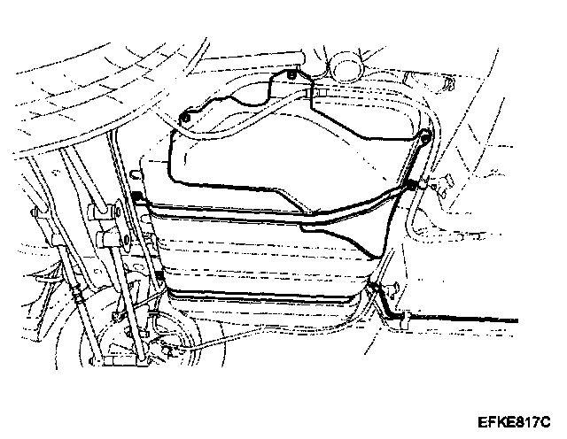 1. Confirm that the pad is fully bonded to the fuel tank, and install the fuel tank by tightening the self-locking nuts.