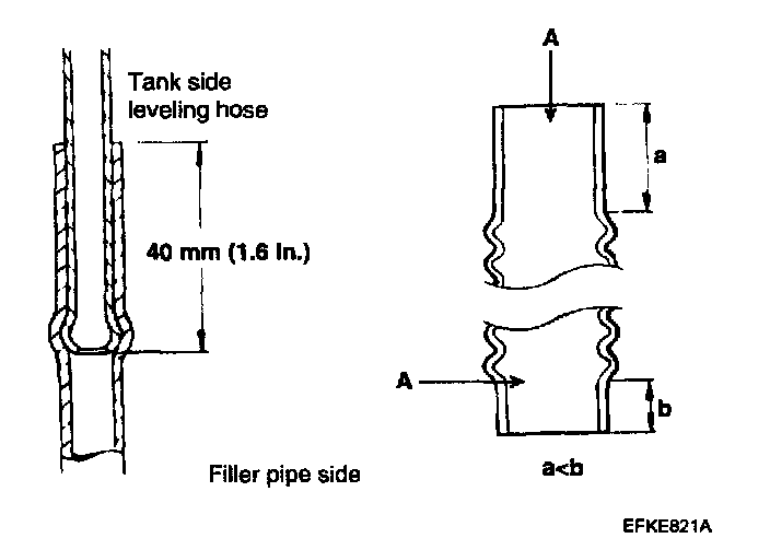 2. Connect the leveling hose to the tank and the filler neck. Insert approximately 40 mm (1.6 in.).
