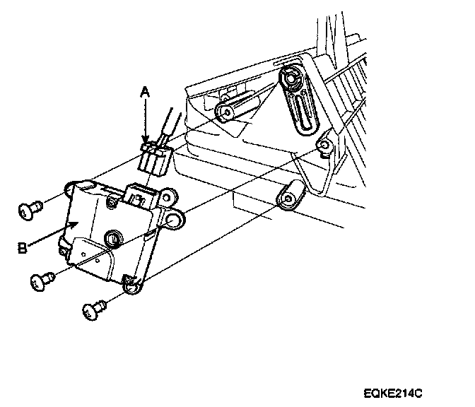 REPLACEMENT1. Disconnect the 7P connector (A) from the inlet actuator (B). Remove the self-tapping screws and the inlet actuator from the blower unit.