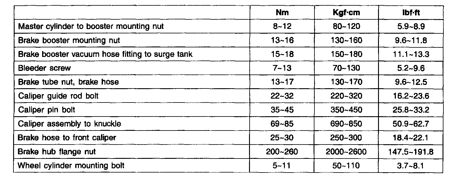 Tightening Torque (Brake)