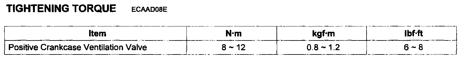 Positive Crankcase Ventilation Valve