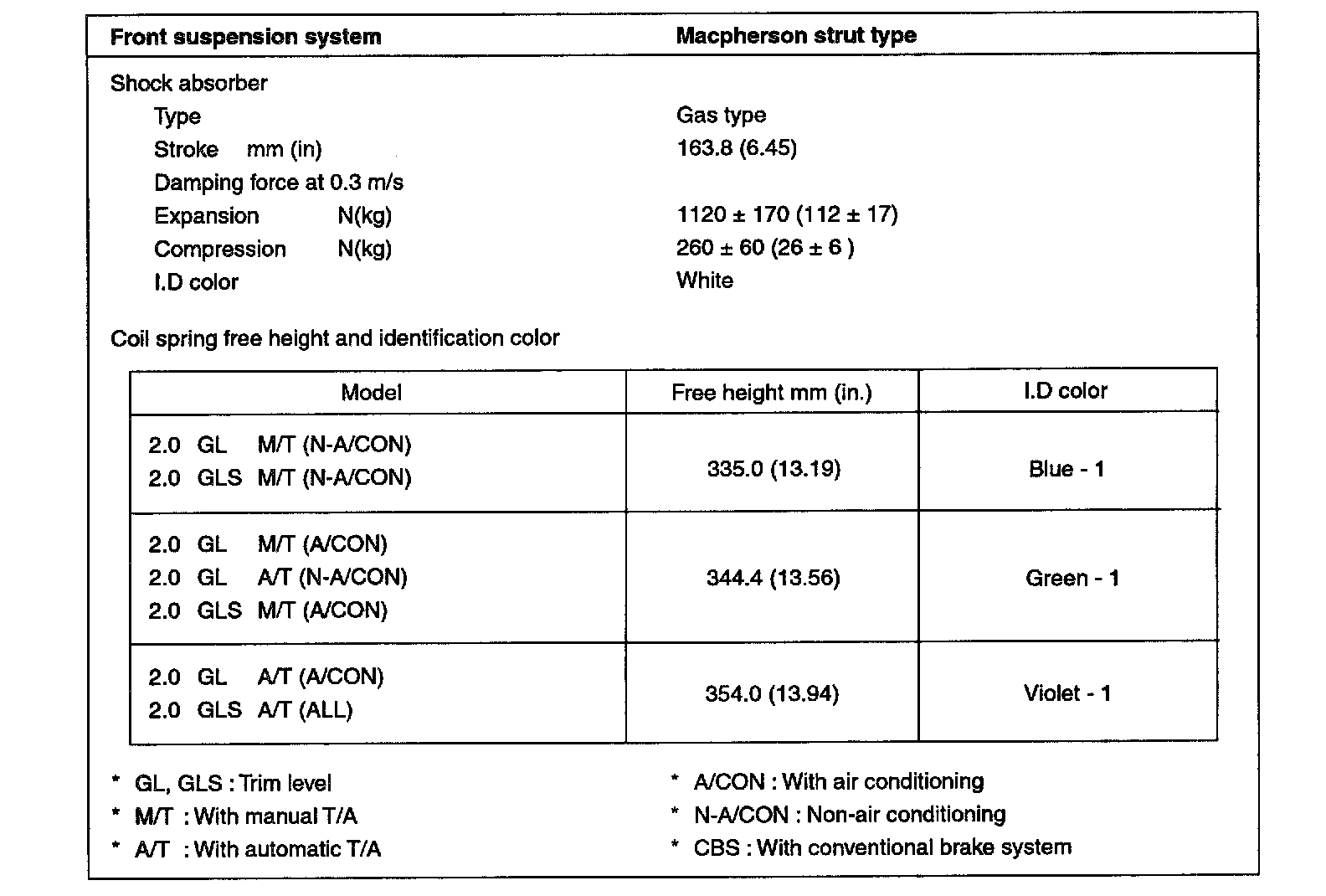 NOTE: Difference between left and right camber angle is within 0°30'. Difference between left and right caster angle is also within 0°30'.