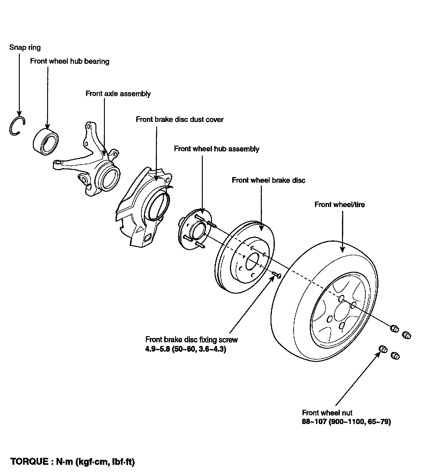 Hub bearing starting torque [Limit 1.8 Nm (18 kgf-cm, 16 inch lbs.) or less
