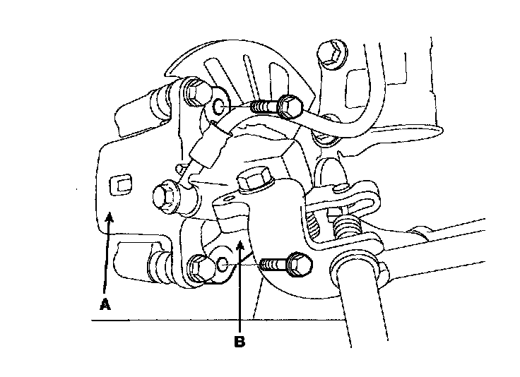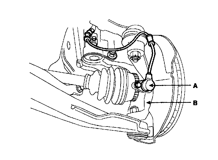 4. Remove the wheel speed sensor(A) from the knuckle(B).