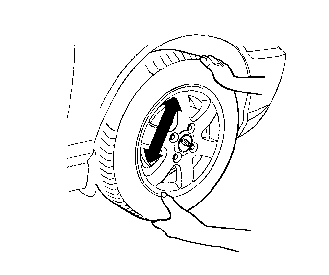 2. Grip each front tire at the top and bottom, and move the wheel inward and outward while lifting the weight of the tire off the front wheel bearings.