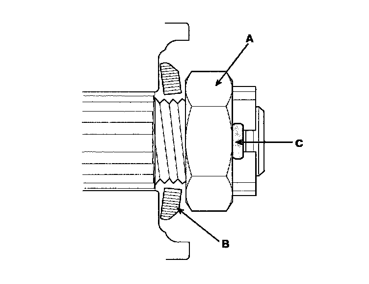 6. Tighten the tie rod end ball joint nut and insert the split pin(C).