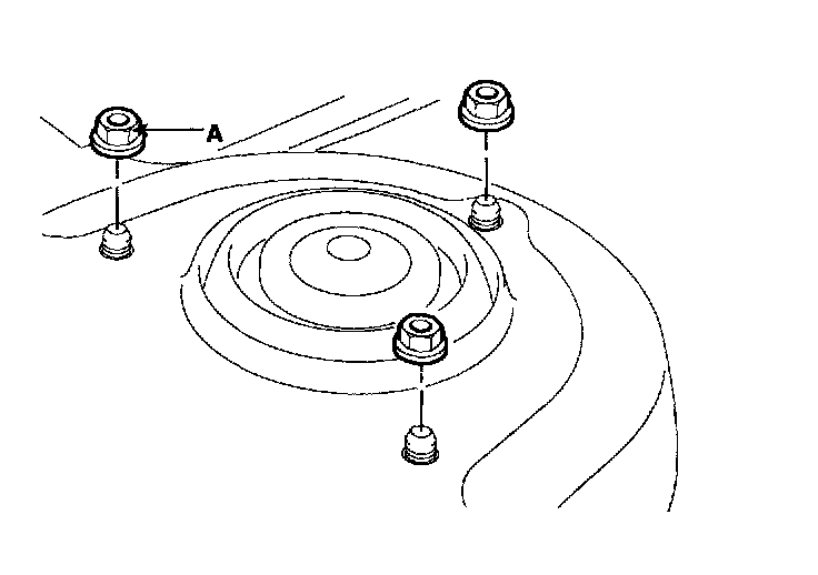 4. Remove the strut upper mounting bolts(A).