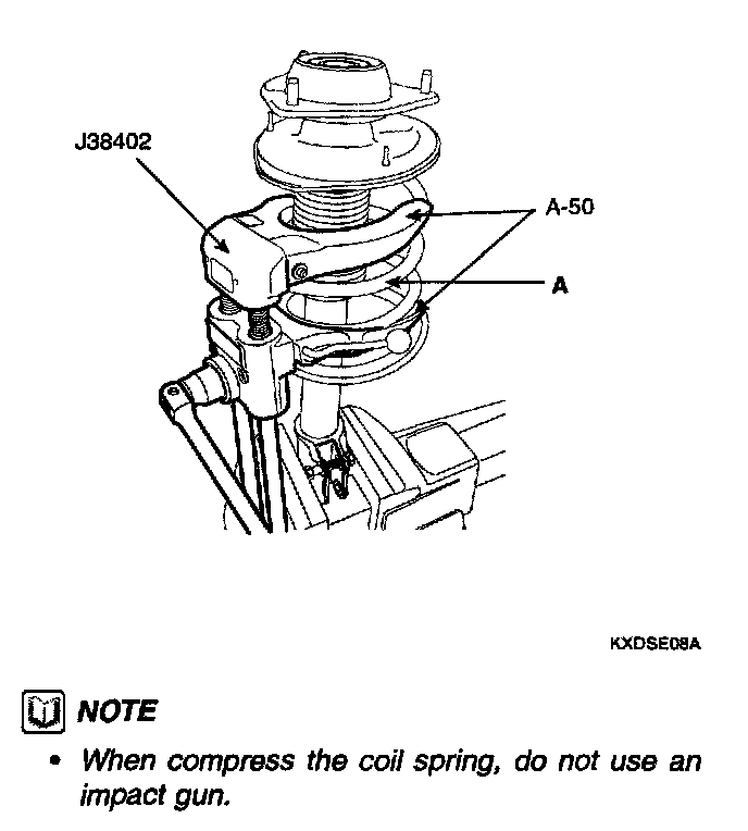 3. Compress coil spring using Special tool (J38402, A-50).