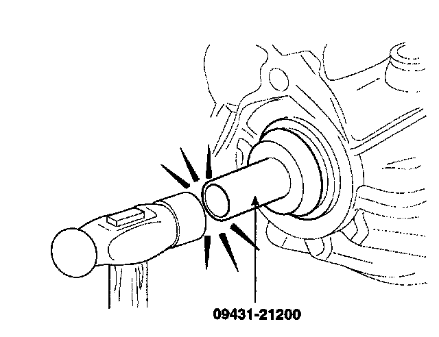 2. Using the special tool (09431-21200) name, tap the drive shaft oil seal into the transaxle.