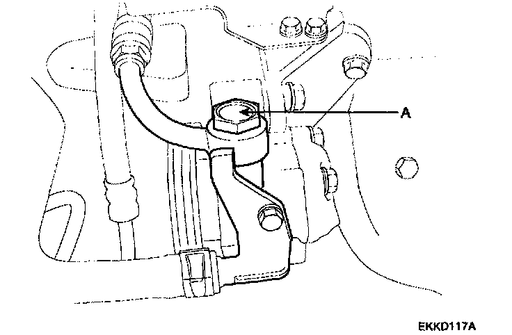 16. Remove the start motor mounting bolt (A) (1 EA).