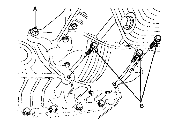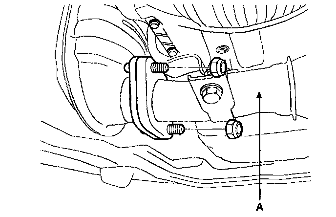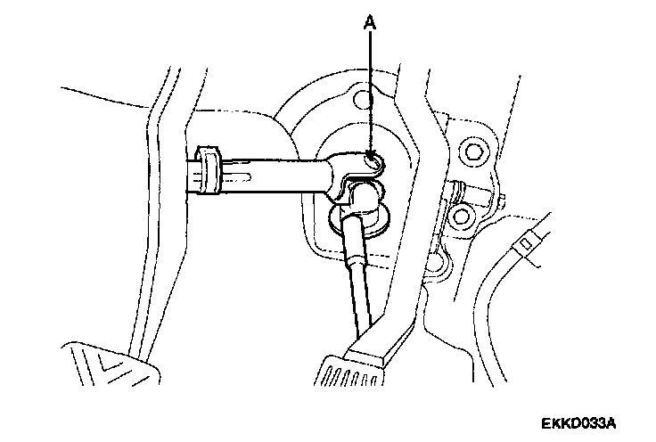 7. Remove the control cable (A) to transaxle range switch mounting nut (B).
