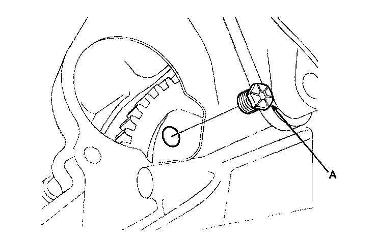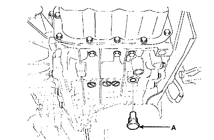 22. Remove the drain plug (A) and drain the automatic transaxle fluid.