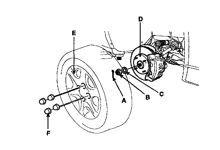 4. Remove the split pin(A), the castle nut(B) and the washer(C) from the front hub(D) under applying the brake.
