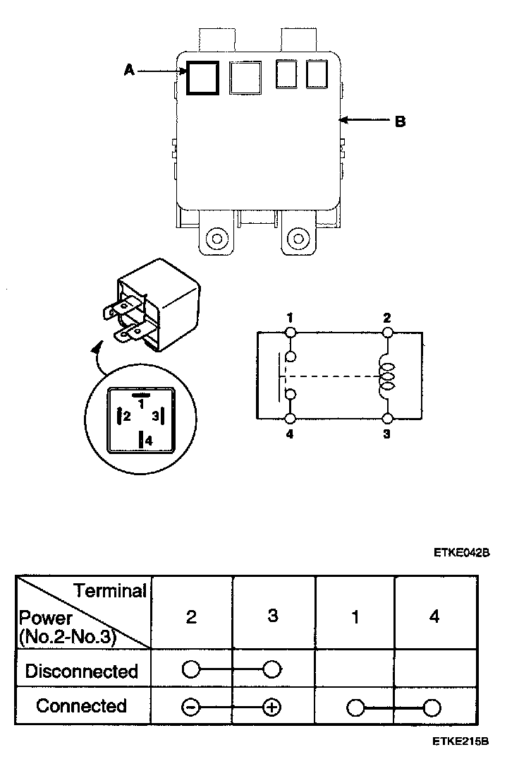 3. There should be no continuity between the No.1 and No.4 terminals when power is disconnected.
