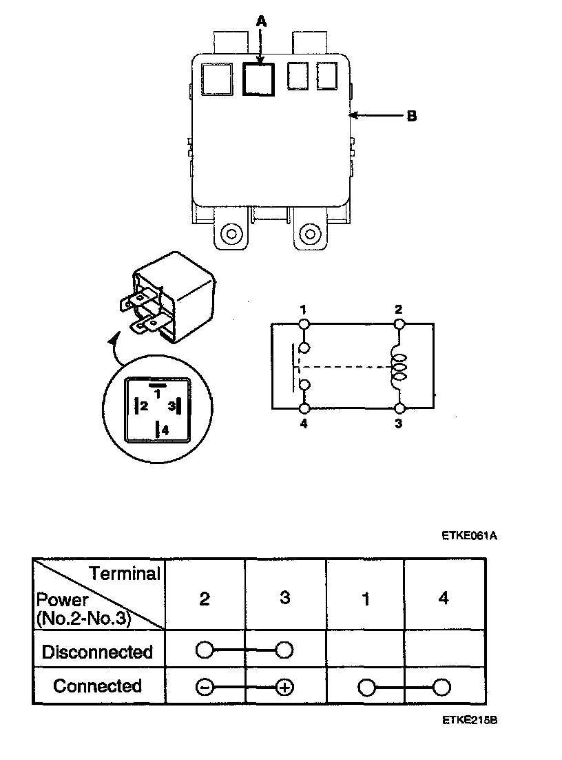 2. There should be continuity between the No.1 and No.4 terminals when power and ground are connected to the No.3 and No.2 terminals.