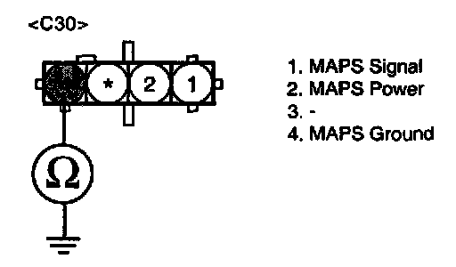 3. Measure resistance between terminal "4" of the MAP sensor harness connector and chassis ground.