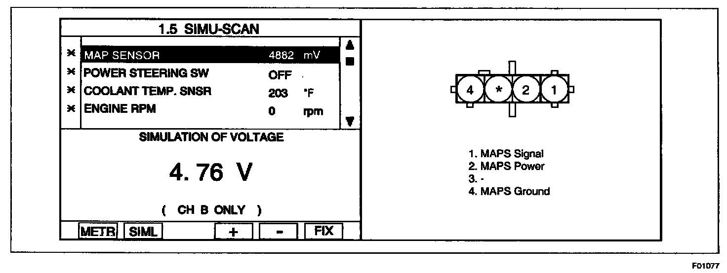 4. Simulate voltage at terminal 1 of MAP sensor signal connector.