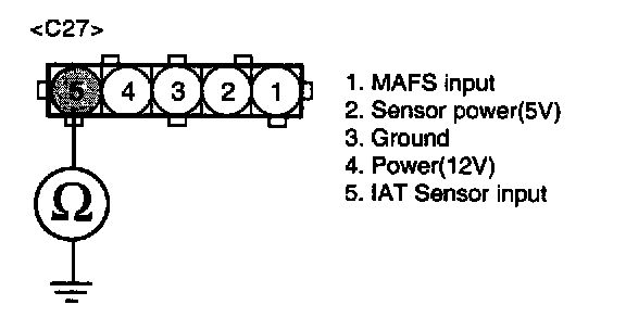 3. Measure resistance between terminal 5 of IAT sensor harness connector and chassis ground.