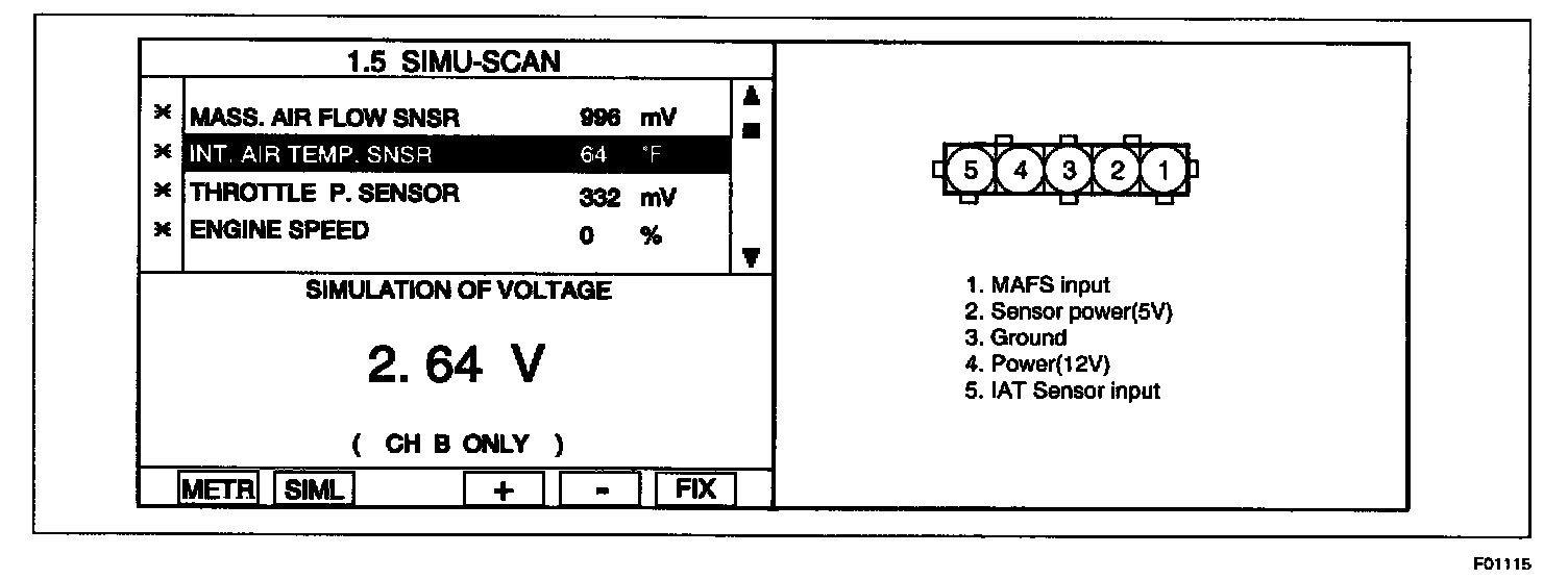 4. Simulate voltage at terminal 5 of IAT sensor signal connector.