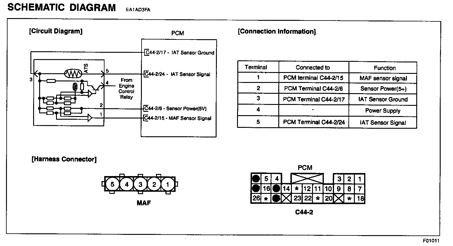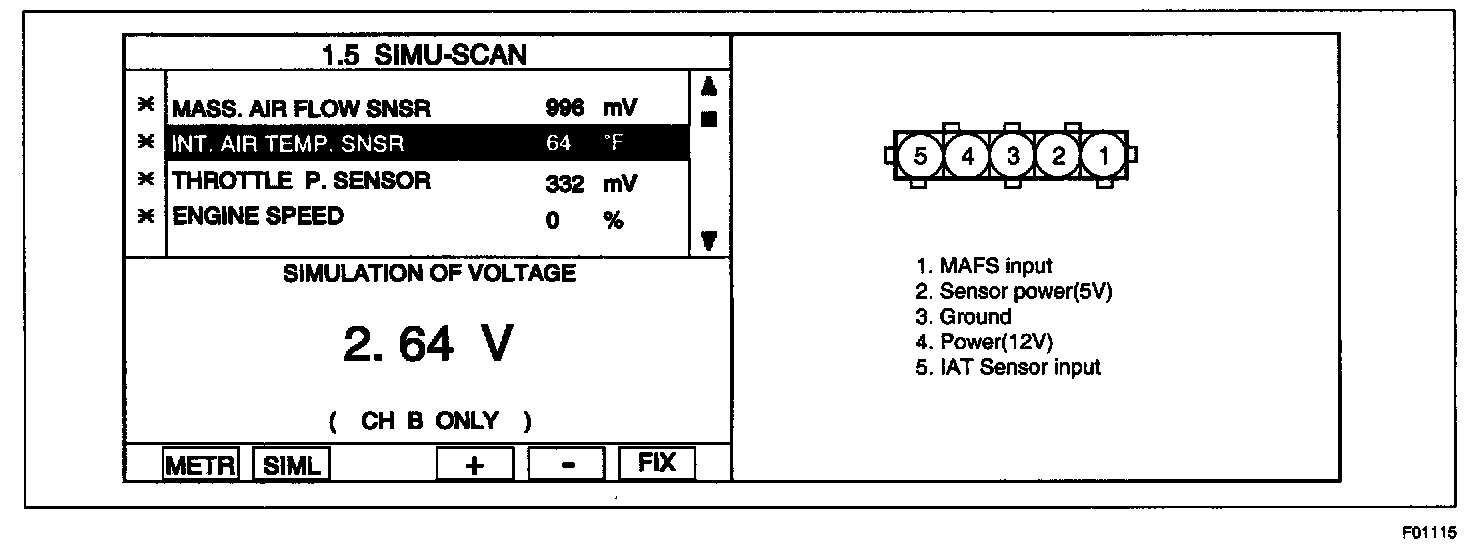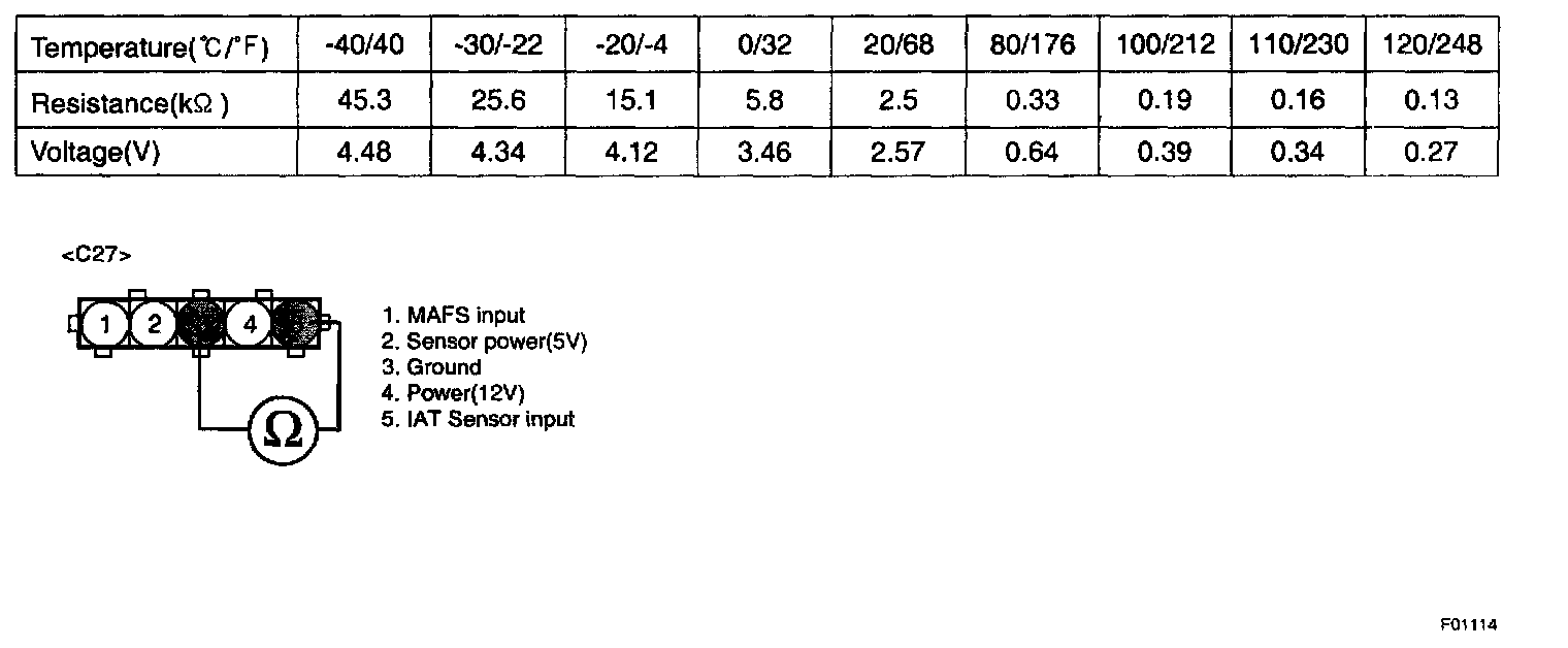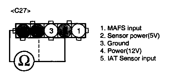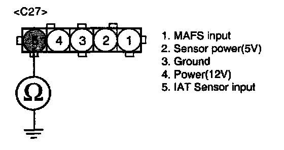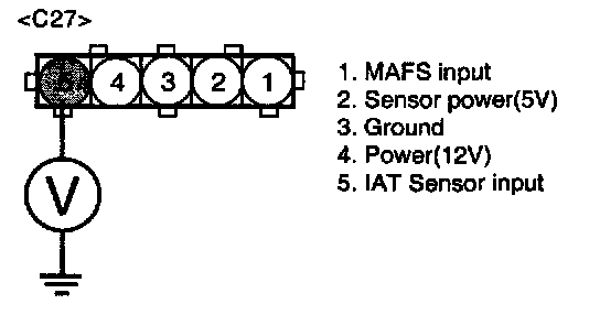 NOTE: Be sure that 5 V reading is caused just by Intake Air Temperature Sensor Pull-up voltage not short to another 5 V source such as MAFS power.