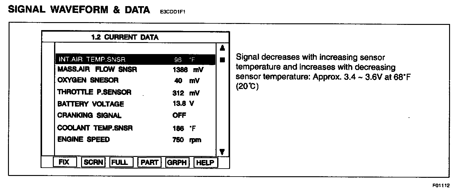 The Intake Air Temperature (IAT) sensor measures the temperature of engine intake air. The Intake Air Temperature (IAT) sensor is a thermistor (a variable resistor that changes along with outside air temperature) in series with a fixed resistor in the PCM. The PCM applies 5 volts to the IAT sensor. The PCM monitors the voltage across the IAT sensor and converts it into a temperature reading. When the outside air temperature is cold the IAT sensor resistance is high, and when the outside air temperature is warm the IAT sensor resistance is low. Therefore, when the air temperature is cold the PCM will receive a high voltage input, and when the air temperature is warm the PCM will receive a low voltage input. The signal from IAT sensor is used for injection time correction (Cold post start correction), ignition angle correction(Air temperature correction) and idle speed correction(Air-density correction).