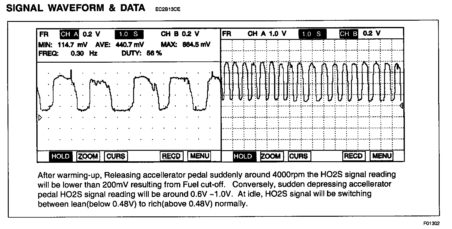 Specification: Verify that the signal is switching from rich(above 0.45 V) to lean(below 0.45 V) a minimum of 3 times in 10 seconds (voltage will vary between 0.1 and 0.9 V).