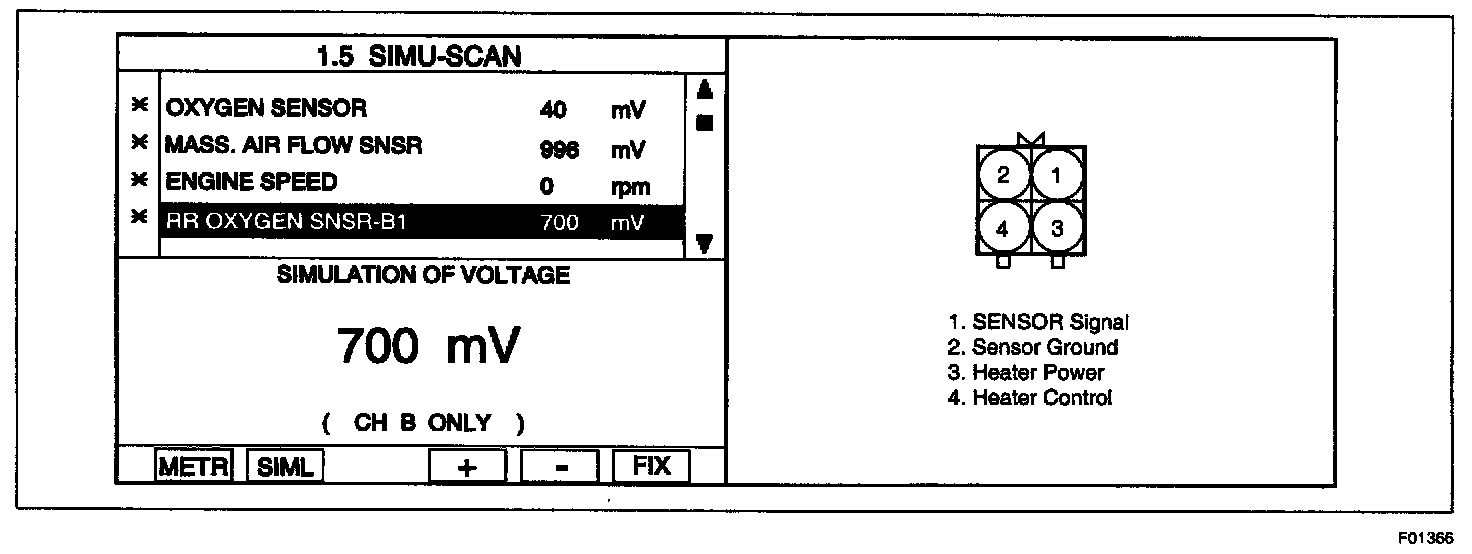 4. Simulate voltage at terminal 1 of HO(2) sensor signal connector.