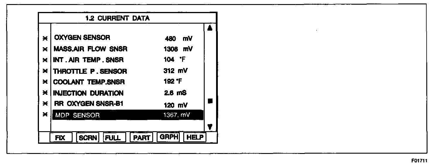3. Monitor HO2S parameter and parameters related to Fuel System Too Lean on CURRENT DATA.