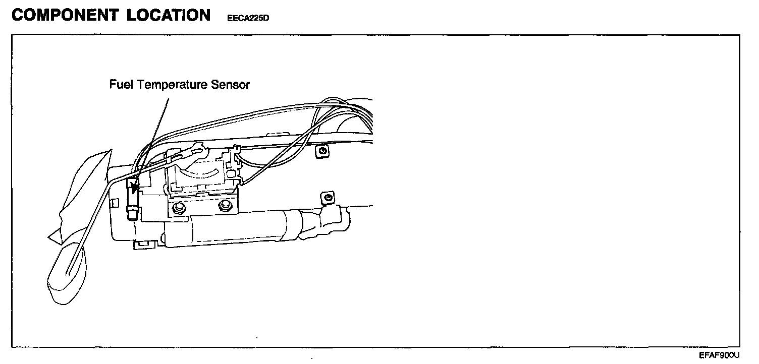 The fuel temperature sensor is located in the fuel tank for detecting the fuel tank temperature.