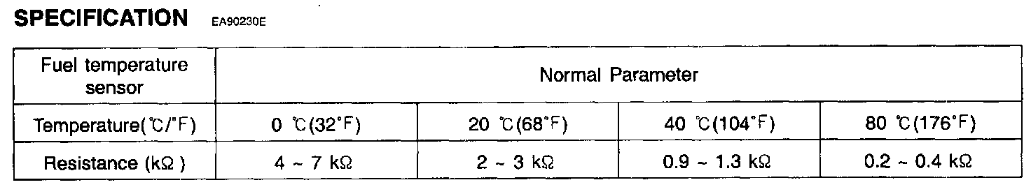 The electrical resistance of the fuel temperature sensor decreases as the temperature increases, and increases as the temperature decreases.