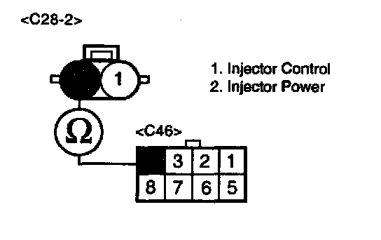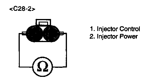 3. Measure resistance between terminal 1 and 2 of injector connector.