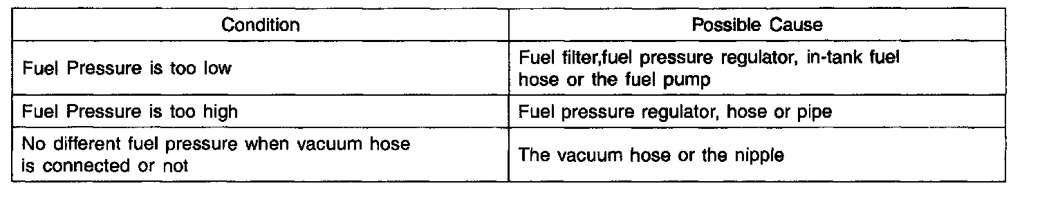 4. Disconnect the vacuum hose from the pressure regulator, and plug the hose end.Measure the fuel pressure at idle.