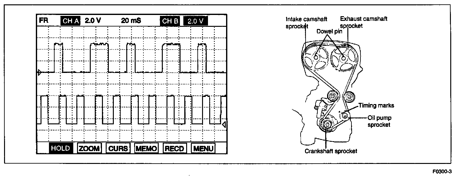 3. Monitor signal waveform from CAM and Crank shaft position Sensor are correctly in alignment.
