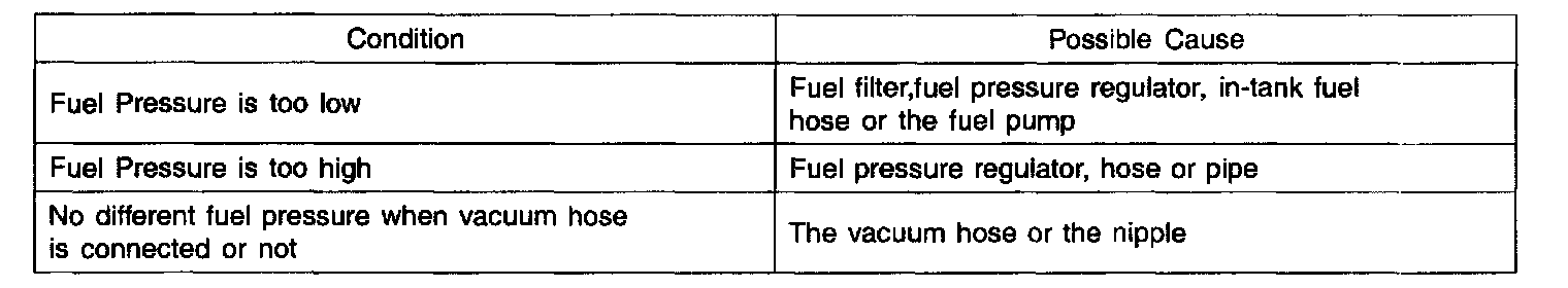 4. Disconnect the vacuum hose from the pressure regulator, and plug the hose end.Measure the fuel pressure at idle.