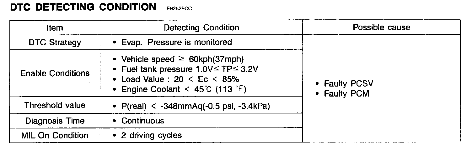 If the PCSV is open stuck, the PCM determines that a fault exists and a DTC is stored.red.