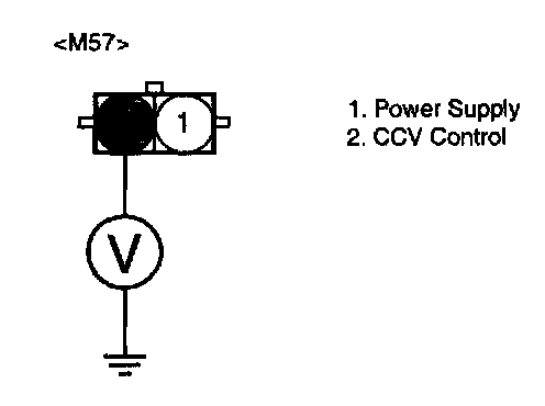 4. Measure voltage between terminal "2" of CCV harness connector and chassis ground.
