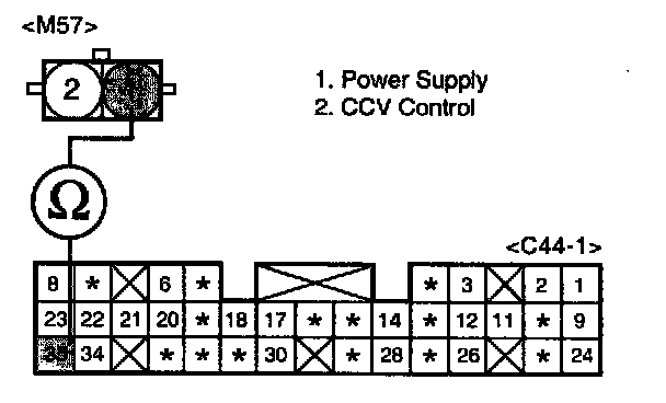 2. Measure resistance between terminals "1" and "2" of the CCV connector.