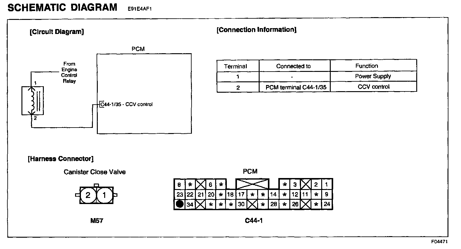 - Check for short to battery in harness between CCV connector and PCM connector.