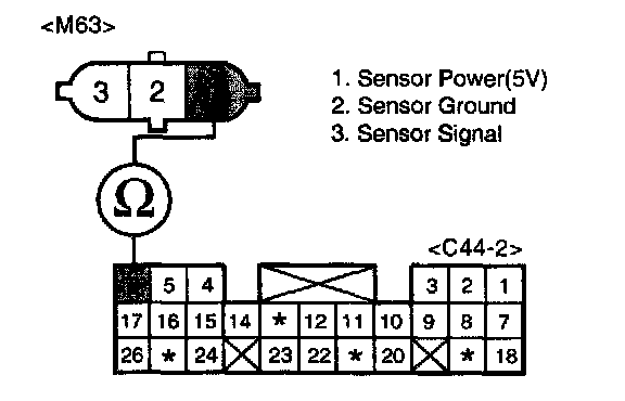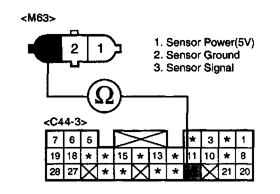 3. Measure resistance between terminal 3 of FTPS harness connector and terminal 22 /C44-3 of PCM harness connector.