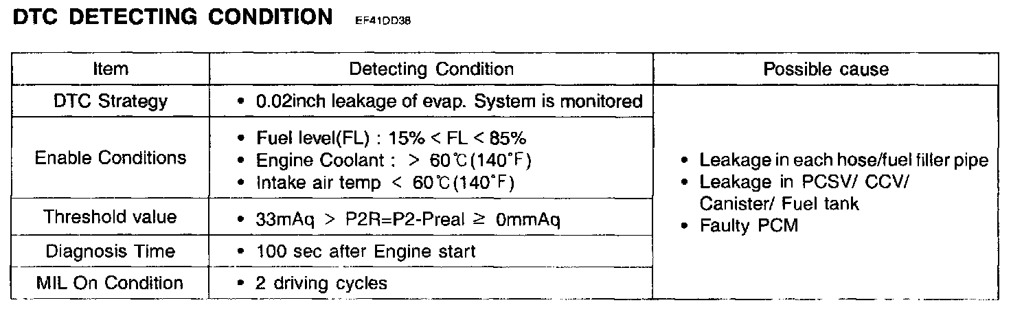 If there is small leak(0.04 inch) in system, the PCM determines that a fault exists and a DTC is stored.