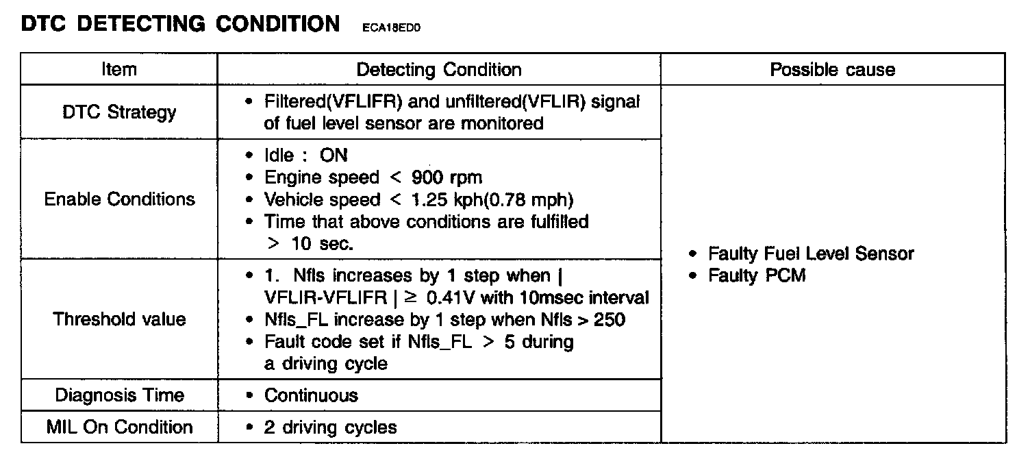 The PCM uses the fuel level input in order to calculate the expected vapor presure within the fuel system. The vapor presure varies as the fuel level change. The vapor pressure is critical in determining if the evaporative emission system is operating properly. The PCM also uses the fuel level in order to determine if the fuel level is too high or too low to be able to accurately detect evaporative system malfunctions.